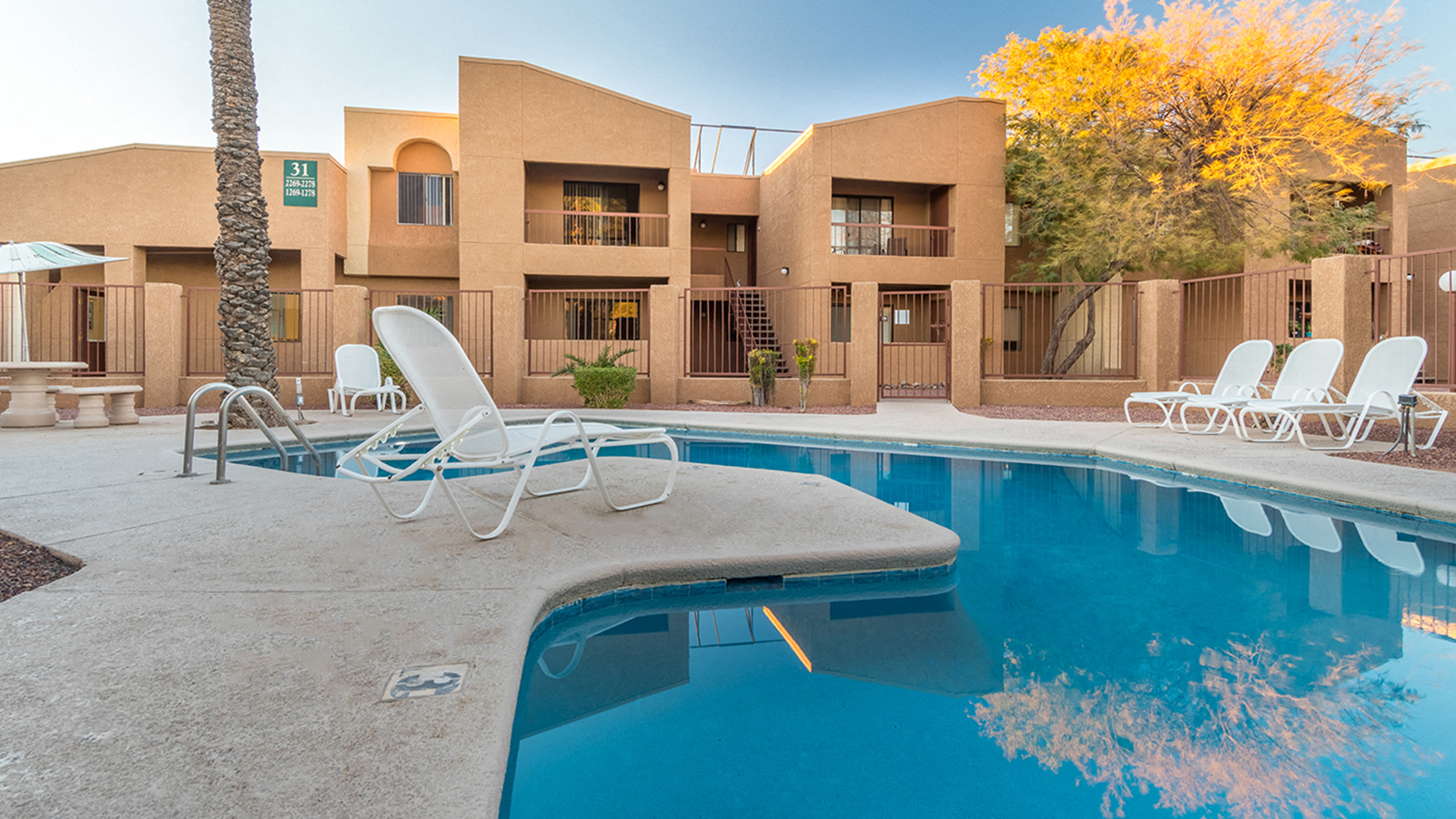 Unique Features 2 pools 24 hour fitness center Air Conditioning Basketball Courts BBQPicnic Area Brand New Welcome Center Cafe Ceiling fans Close to downtown Scottsdale.